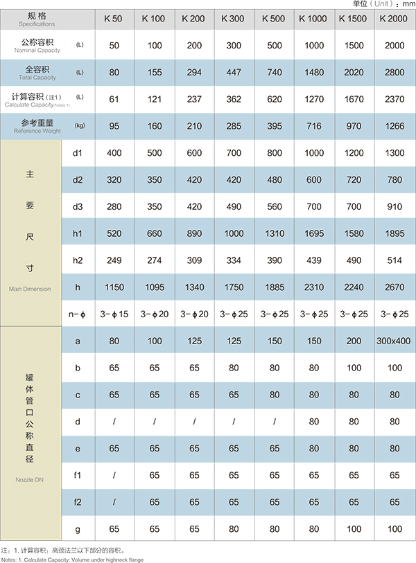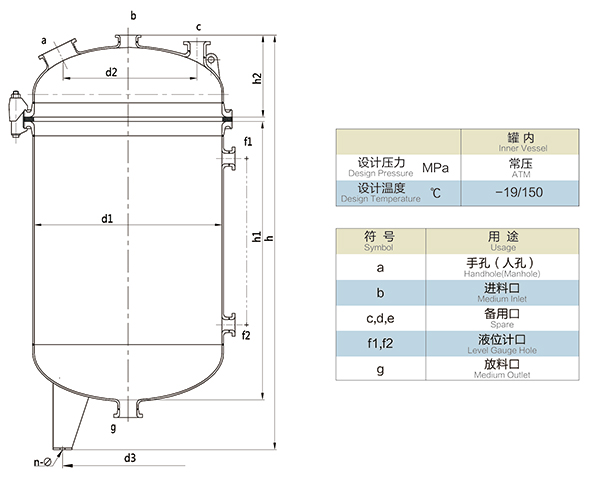 K50L-K200L開式搪玻璃貯罐(開式搪玻璃儲罐)設計圖紙及參數(shù)如下所示: