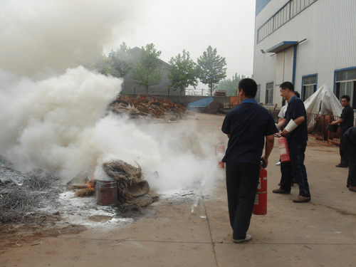 2009年6月28日, 每年一次的安全消防常識講座如期在淄博太極搪玻璃設(shè)備有限公司會議室舉行。安全大會上公司安全技術(shù)負(fù)責(zé)人對全體職工進(jìn)行了深刻的安全意識教育。今年夏季異常高溫干燥,雖然這種天氣對于搪玻璃設(shè)備的制造創(chuàng)造很好的條件,但高溫干燥極易引起火災(zāi),倡導(dǎo)每個(gè)職工一定有較高的安全防火意識。會后公司組織各生產(chǎn)的全體職工進(jìn)行消防模擬演習(xí)。