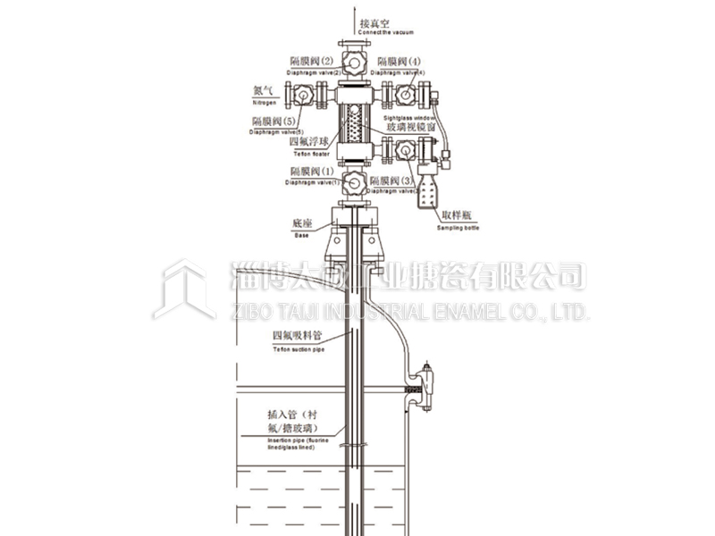 太極反應(yīng)釜手動取樣系統(tǒng)(MANUAL SAMPLING SYSTEM FOR REACTORS)為防腐手動取樣裝置。取樣物料接觸各部件均采用里襯PFA、襯氟材質(zhì),達(dá)到防腐目的;四氟吸料管配套插入管(襯氟/搪玻璃材質(zhì))浸于釜內(nèi)料液以下,增加其過程的穩(wěn)定性。通過抽真空將物料在系統(tǒng)中安全、快捷取樣。